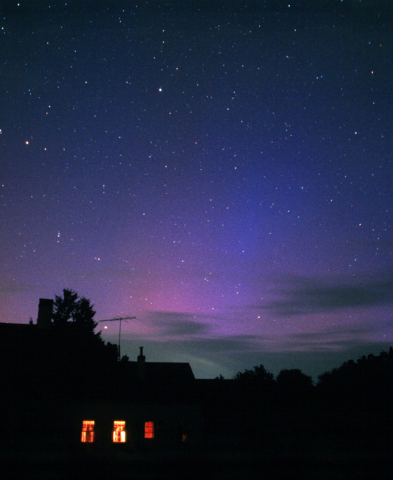Comments: The beautiful blue and pinkish/red aurora of July 27th begins to fade.