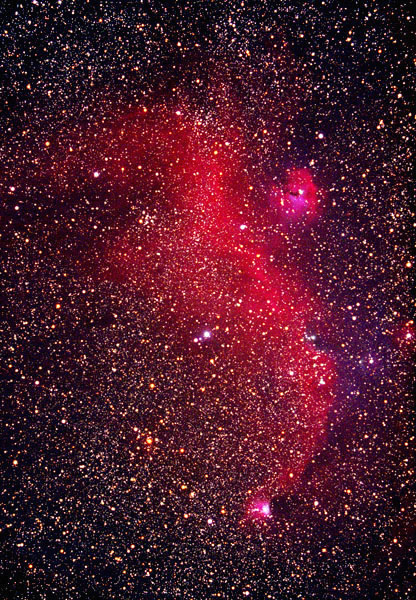 Exposure: Composite of four 30-minute exposures. Negatives scanned with a UMAX Powerlook 3000 scanner, blended in Picture Window with enhancement in Photoshop.