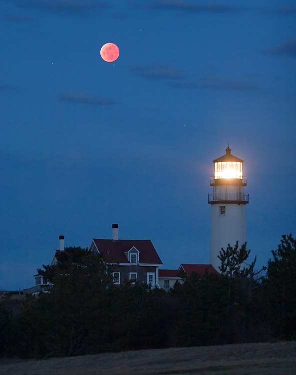 Subject: The totally eclipsed Moon rises behind Highland Lighthouse